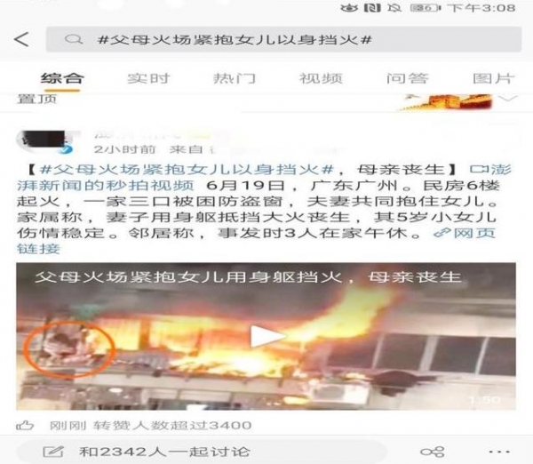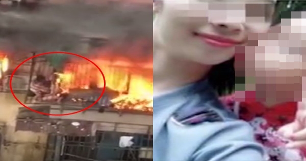爸爸媽媽坐在防盜網上用身體為孩子擋火。