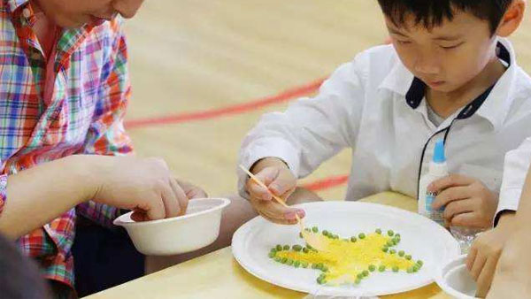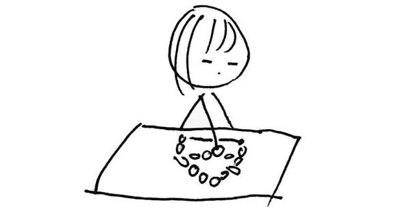 還可以將豆子替換成在公園裡撿回來的小石頭,在海灘撿來的小貝殼等,將簡單的描線遊戲變成充滿童趣的創意畫。