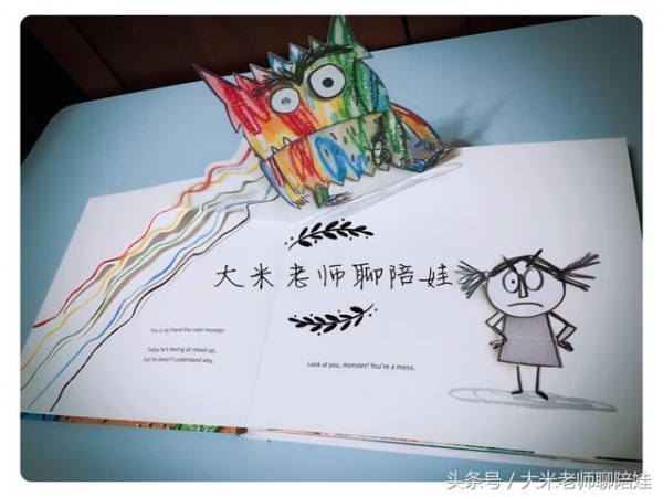 除了情緒臉譜這類工具,繪本也可以幫助孩子識別自己和他人的情緒。大米老師是在孩子2歲開始閱讀的這本《The Color Monster》,孩子特別喜歡裡面的顏色/情緒小怪物。