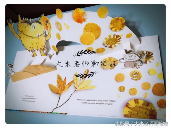 情緒被覺察後,當下需要控制,事後需要得到合理的宣洩,無論是對大人還是對孩子。當我和孩子當下和好之後,我會給他提供紙、顏料和筆,讓他選擇一個情緒怪物(The Color Monster),然後給他塗色。他經常會選擇畫Happiness(高興的小怪物),塗完他會開心地說:“看,我們現在都變成Happiness(高興的小怪物)嘍!”
