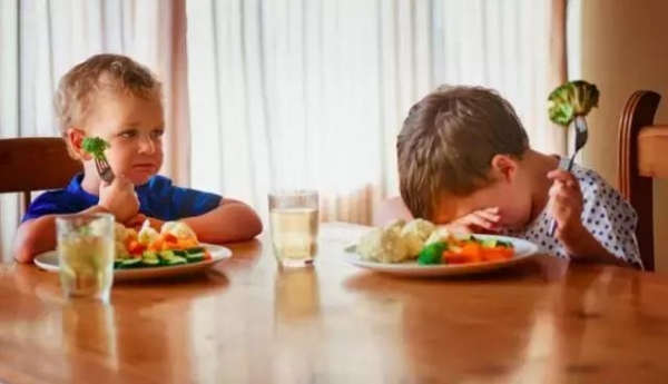 吃飯時,不喜歡的蔬菜放到孩子面前,孩子會有壓力甚至反感。