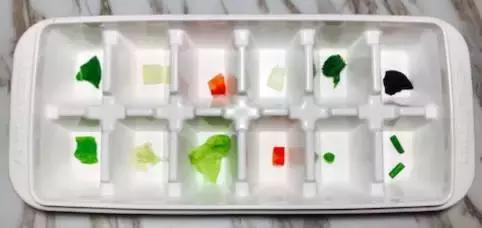 把蔬菜都處理成豌豆大小,放到輔食盒的小格子裡(沒有輔食盒放到盤子裡也可以),這樣做不是為了讓寶寶吃,而是讓她玩,熟悉菜的紋理和味道。豌豆大小的蔬菜塊,即使偶爾整個吞下去,也不會出現大問題,但拿、捏、抓、嘗,不僅鍛鍊了手指靈活能力,也刺激了手指觸覺和舌頭觸覺的發育。
