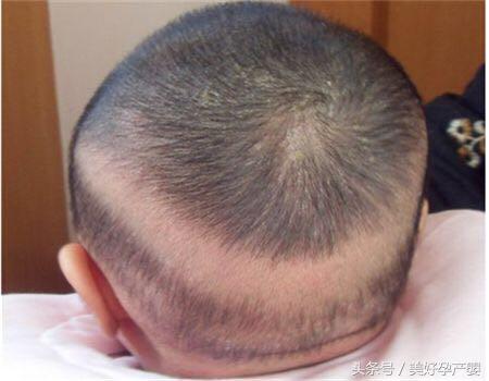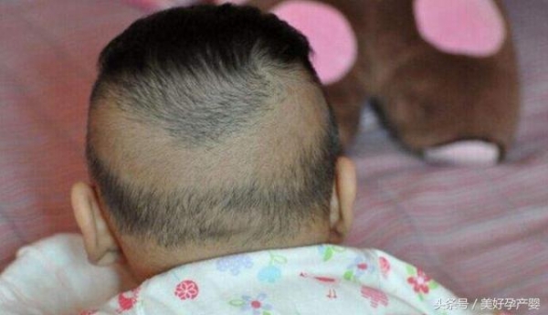 上圖顯示的嬰兒枕後區域頭髮稀少,稱為枕禿。這通常是寶寶平躺時頭與床面摩擦的結果,與缺鈣無關。問題是當孩子睡不踏實的時候,也會增加頭部與床面摩擦的次數。可是孩子究竟是因為什麼原因睡不踏實,這個就需要我們進一步探討了。關於枕禿,隨著孩子長大,能夠獨坐、獨站、獨走,加上睡眠逐漸安穩,枕禿就會慢慢消失,所以關於枕禿媽媽們就不用過分擔心了。
