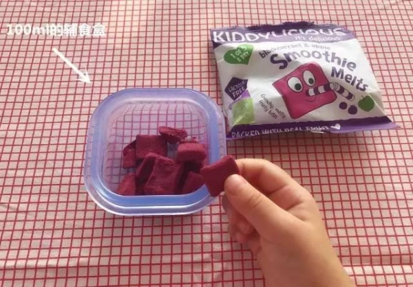 我們拿溶豆來舉例,平時寶媽可以拿入口即化的輔食,根據不同的月齡,來逐漸練習寶寶的精細動作發育。