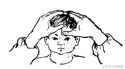 第一,開天門,在兩眉之間向上至前髮際成一直線。向上直推稱開天門(見圖1)。主要用於外感表證,發熱、惡寒、無汗等症,有疏風解表,開竅醒腦,鎮靜安神之功。一般推100~200次左右為好。