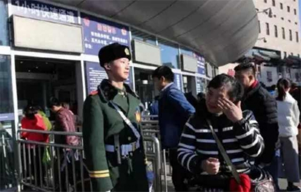 6、這對父母大老遠從老家趕到北京,本想偷偷的看一眼站崗的兒子就走,沒想到被兒子看到,看到兒子紅紅的眼圈,媽媽哭了。看到媽媽哭了,兒子再也無法控制住眼淚。可是兒子依然保持著站崗的姿勢,因為他要保護更多的“父母和兒子”平安回家過年