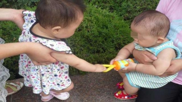 她家兒子跟樂樂差不多大,所以兩個孩子一開始還是玩得挺不錯的。過了一會兒,閨蜜家的兒子想要玩樂樂的一個玩具,但是那是樂樂最喜歡的玩具,所以樂樂不願意讓他玩。於是,小雯就開始哄樂樂,想要從樂樂的手裡把玩具拿過來,可是樂樂無論如何都不答應,這下小雯火了,所以就一個巴掌扇在了樂樂的臉上。