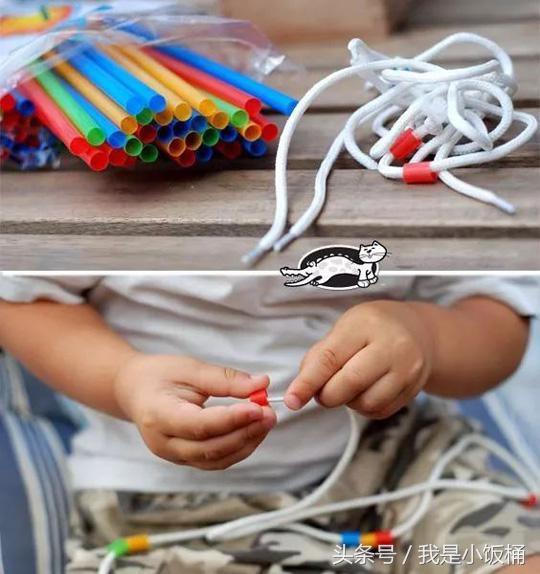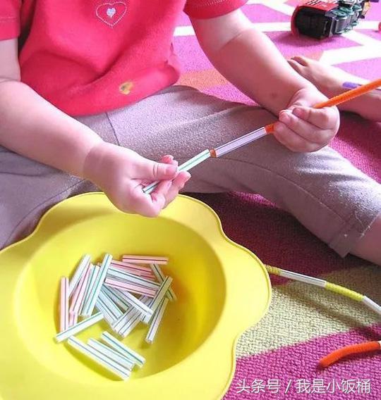 其實大部分材料根本不必專門購買,細心收集一下,早上買粥打包用的帶蓋紙杯,喝豆漿的吸管,洗乾淨晾乾,都可以變成不花錢的“教具”。