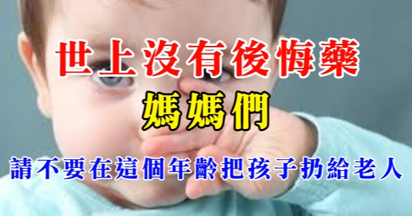 大家好,我是小寶貝媽媽經小編CA!今天要來說說關於「世上沒有後悔藥:媽媽們,請不要在這個年齡把孩子扔給老人!」的事!不知道大家對於這個有多了解呢?一起來看看吧!