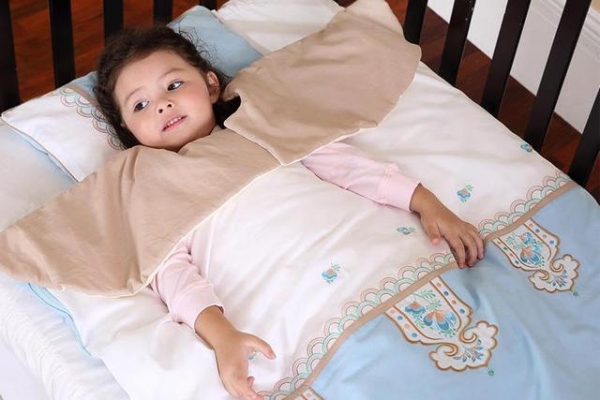 如果比較老實的寶寶,可直接蓋上厚被子即可,這樣寶媽們就可安心睡覺啦!半夜不需要再起夜啦!對於這階段的寶寶,睡覺時即使不穿睡袋,裡面還應穿著貼身的保暖內衣。