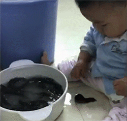 直到我做完飯,他都還沉浸在跟泥鰍的較量中。