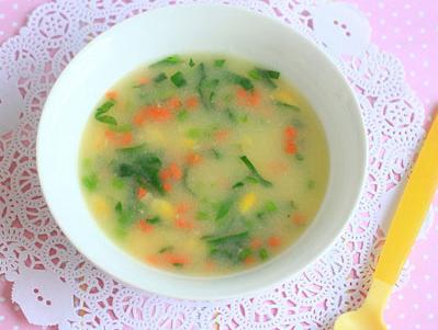 玉米含維生素B1、維生素B6較多,此粥對人體補充營養非常有好處,宜多吃。胡蘿蔔富含維生素,並有輕微而持續發汗的作用,可刺激面板的新陳代謝,增進血液迴圈,從而使面板細嫩光滑,膚色紅潤,對美容健膚有獨到的作用。