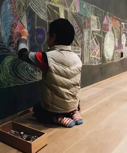 兒子在黑板牆上天馬行空,